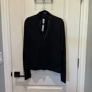 Black quarter zip Lululemon sweater. See photos - fabric is textured on the front, sleeves, and part of the back. Great condition - has only been worn a handful of times. No pilling but it needs a good lint roll.