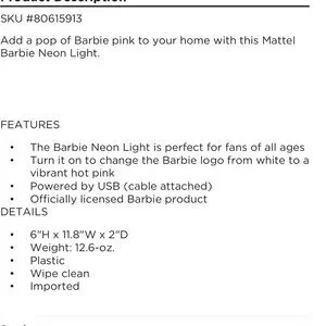 Official Mattel Barbie Pink Neon Sign-USB powered NIB