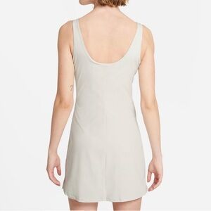 Nike Bliss Luxe training dress (Small). Love the dress but it no longer fits. Has shorts underneath, although, you don’t see them while wearing like the picture shows. Color is a creamy white.