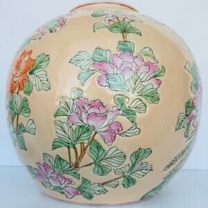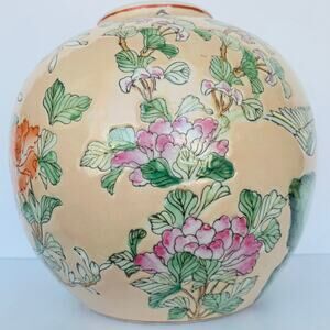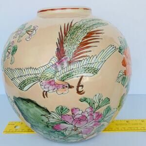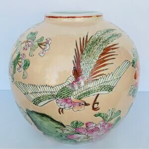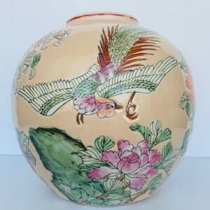 Antique Chinese Famille Rose Porcelain Phoenix Birds & Floral Flower Ginger Jar