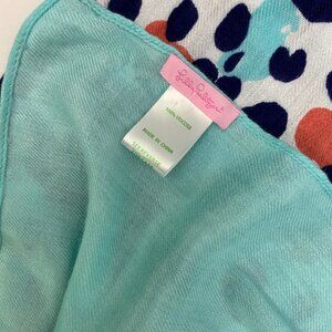 Lilly Pulitzer Get Spotted Lillian Oversized Scarf Rolled Hem Edges. A beautiful soft lively wrap scarf that can double as a shawl or Beach wrap around.