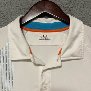 Under Armour Golf Polo Mens XL HeatGear Loose White Athletic Golf Shirt Preppy - Pre-owned excellent condition / Minor mark on the bottom as shown on the photo - Please see pics / Very nice shirt / Very cool