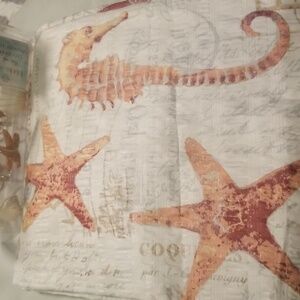 12 Pack Coral Isle Decorative Metal Shower Hooks and 70"×72" Coral Isle Shower Curtain; White Gray and Coral; NWOT