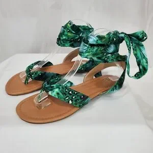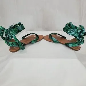 NWOB Thalia Sodi Womens Floral Joleyn Ribbon Tie Sandal Green Tropical Sz 7M