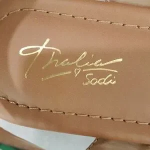 Gorgeous satiny, sexy, tropical Thalia Sodi ankle tie slingback thong sandals in green. New without box. These sandals are perfect to wear on vacation to the beach, a cruise, or a resort.