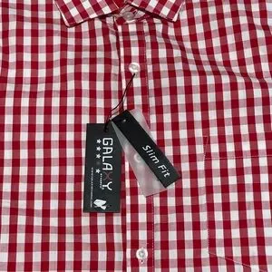 This Galaxy By Harvic dress shirt is perfect for any stylish man's wardrobe. The red and white striped pattern adds a classic touch to this modern piece. The long sleeves and regular size make it versatile for any occasion, whether it's a formal event or a casual night out. Made with high-quality materials, this dress shirt is sure to impress.