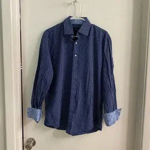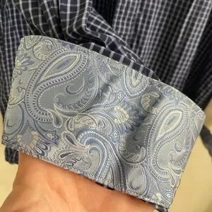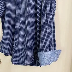 Bristol & Bull button down shirt size large, checkered with paisley sleeve cuffs, great condition, light & navy blue.