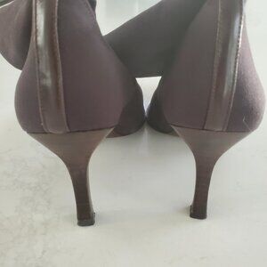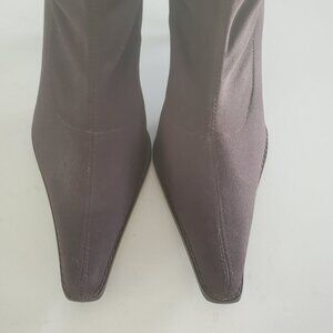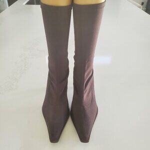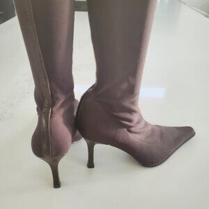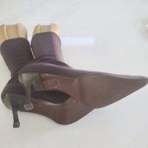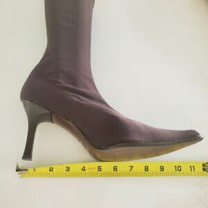 This is a stunning pair of Martinez Valero size 9.5 dark brown nylon Stretch pull on boots. The boots are in superb condition with a dark brown leather strip running up the back of the boots. I do have measurements in the photos to refer to. The shaft is 10.5" tall and the toe to heel is 11.5".