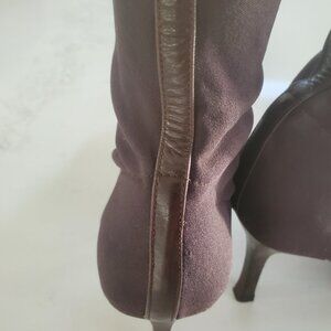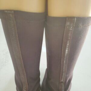 Martinez Valero Women's Dark Brown Stretch Pull On Boots Back Leather Trim 9.5