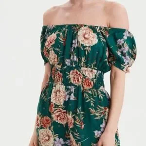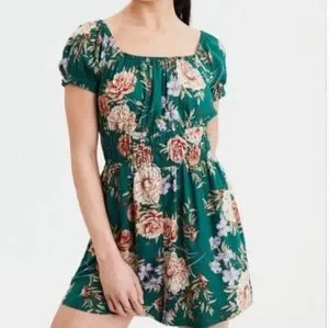 American eagle small green floral spring short sleeve elastic waist romper