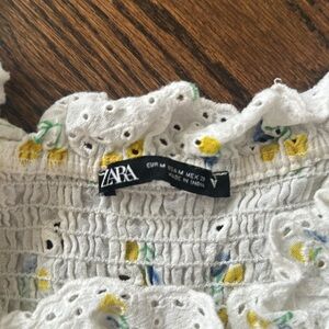 Gorgeous yellow and blue floral ZARA top! Adorable for brunch or really any outing! Slightly cropped but fits perfectly with any jean short, skirt, or jeans. PERFECT condition. Size medium but fits medium or small