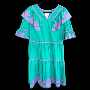 Vintage Bevlin Hawaiian Muumuu Dress Ruffle Mermaid Appliqué Medium