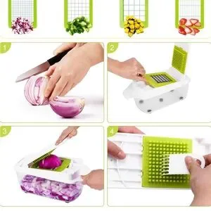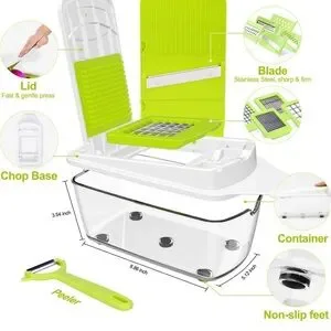 Made of food-grade ABS, is free of BPA, non-toxic and odorless. Made of anti-rust hardened stainless steel, all blades of kitchen choppers and slicers are ultra-sharp. Fruit and vegetable chopper is easy assemble & save space. Veg chopper food dicer is a must-have for kitchen.