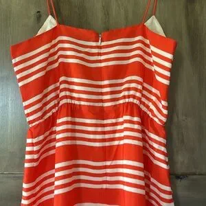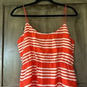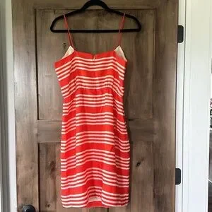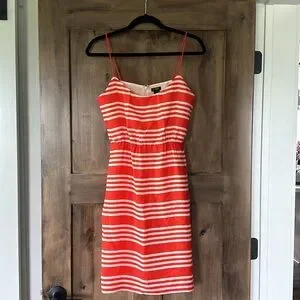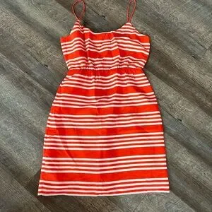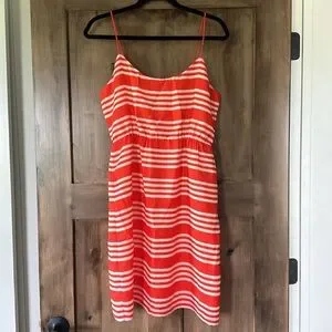 Great light weight J. Crew dress. Orange and white striped. Silky like material. Would look cute alone or belted. Vibrant orange color! Excellent condition!