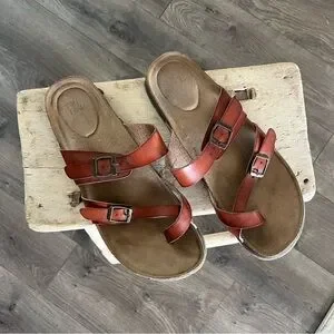 Asymmetric Strap Sandals Brown Footbed Sandal. Birkenstock look alike!