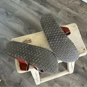 Sold xlist Footbed Sandals Brown Time and Tru Asymmetric Strap