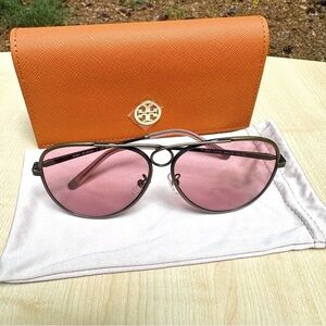 TORY BURCH sunglasses for women aviators with rose pink lenses metal NEW + CASE