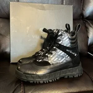 Versace La Greca leather suede monogram combat Boots NWB