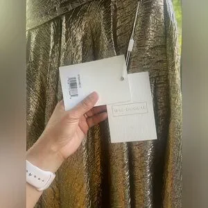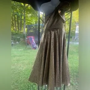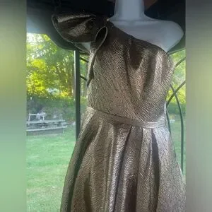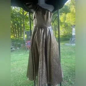 Details: Sleeveless, One Shoulder Bow, Metallic, Pockets, Mid-Open Back