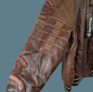 *NWT Vintage Bare Fox Players Leather Super Bowl All Stars Jacket NY Football
