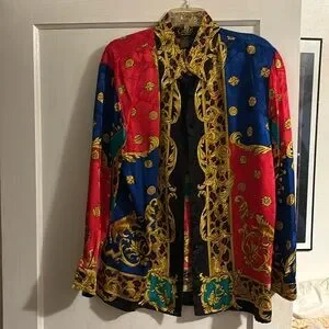 Beautiful Vintage Silk Blouse, SZ 12 a medium by today’s standards. Soft padding in the shoulders, silk covered buttons.