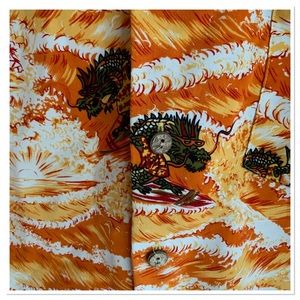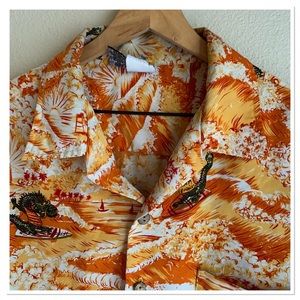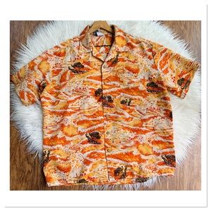 Vintage Kennington Hawaiian Tropical Print Button Up Shirt Dragon Print Orange