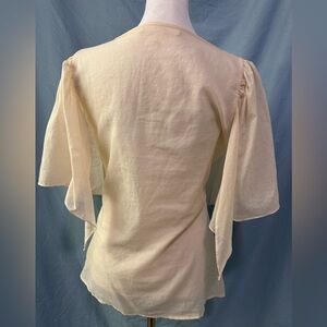 Jenny Han Cream Cotton Linen Top with Butterfly Sleeves Lace Bust Sz 8 NWT $195