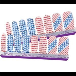 New in package Color Street nail strips. Retired “Flag, You’re It” features a subtle tie-dye effect with a frosted finish of a red, white, and blue flag.