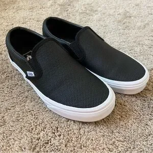 Vans Classic Slip-On Perf Leather Shoe in Black Size 6.0