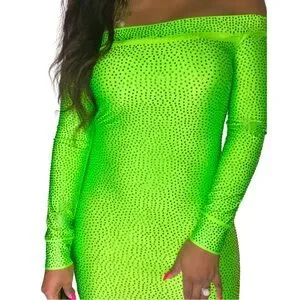 Lime Green Neon off Shoulder Rhinestone Dress 🥳