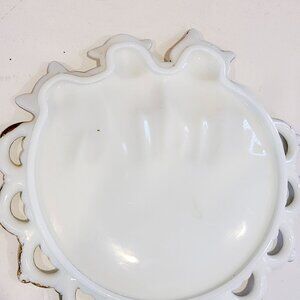 This is a vintage milk glass plate with kitty cats. Shabby chic condition with some missing paint as shown, but still super cute.