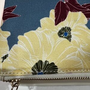 Rachel Pally floral canvas and white faux pebbled leather fold over zip close reversible clutch