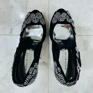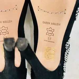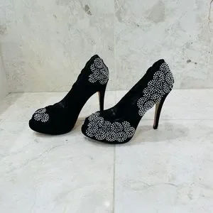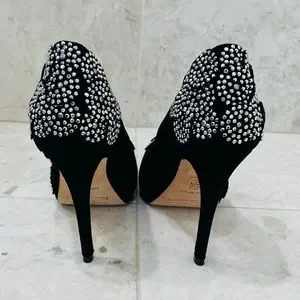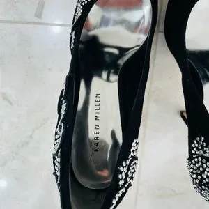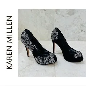 KAREN MILLEN {6 / 37} Black Silver Beaded Pumps Peep Toe Stiletto