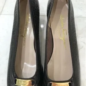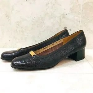 SALVATORE FERRAGAMO {8A2} Brown Embossed Leather Pumps
