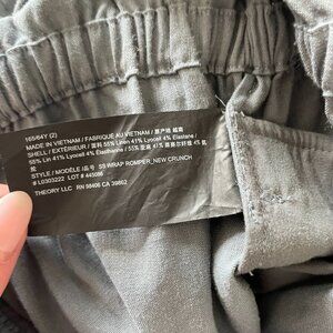 Theory Short-Sleeve Linen-Blend Wrap-Front Romper Steel Size 2