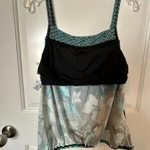 Beach House Tankini Swim Top Size 12 Adj Drawstring Hem Lined Bust Support