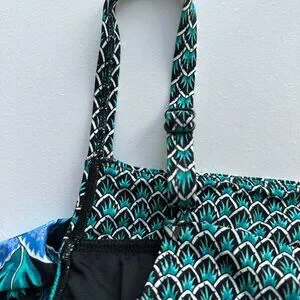 Colors: Teal, blue, black and white tropical