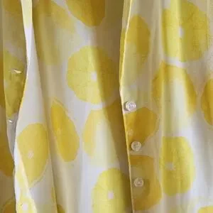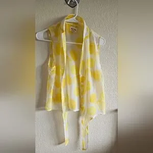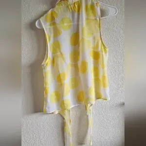 white and yellow lemon print button front and tie front sleeveless top