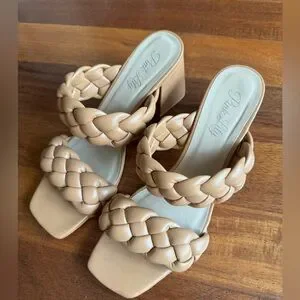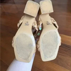 Worn once, see photos for condition. Overall in great condition but a few scuffs. 3 inch heel. Color is camel