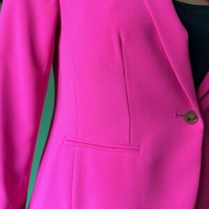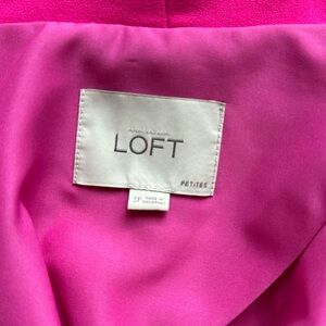 NWOT Ann Taylor Loft Suit Jacket. Eye popping hot pink suit jacket in size small petite. Single button closure in front. Cuffed at the wrists with pinstripe design underneath. Lightly padded shoulders. you will certainly be the center of attention with this gorgeous piece. Pristine condition. This is what’s missing from your wardrobe.