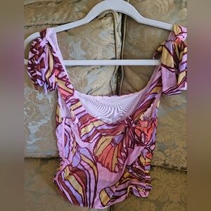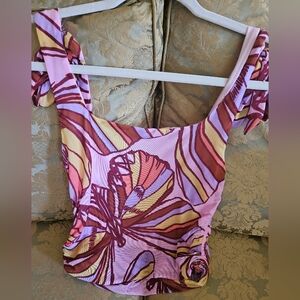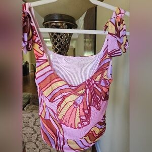 NWOT Free People Avenue mesh tank top pink/multicolor