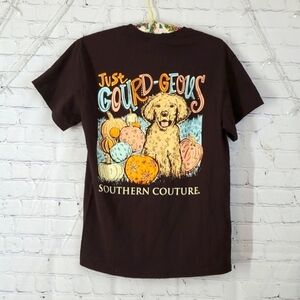 Southern Couture Labrador Retreiver Doodle Dog Fall Pumpkin Print Brown Tee Sz M