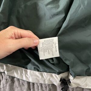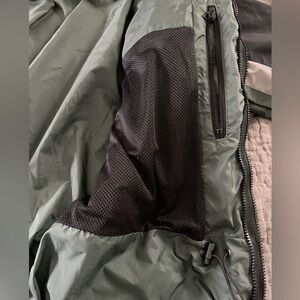 It doesn’t appear to include the fleece layer, just the outer nylon jacket style (no hood). Light scuff on one sleeve- looks worse in pic than in person. A great layering piece! Lots of pockets.