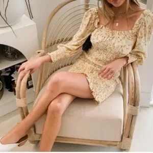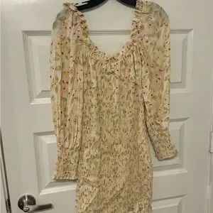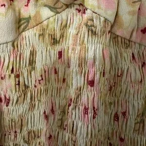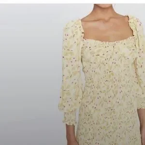 Beautiful ruched spring dress in yellow with pink floral print. Size US 4. New with tags. Never worn. Rayon fabric.