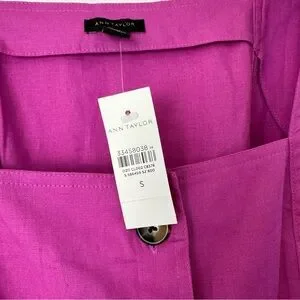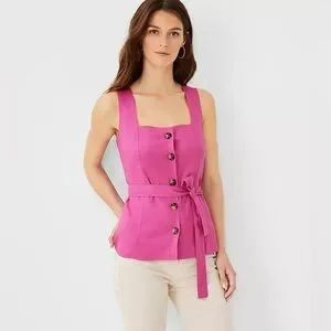 NWT Ann Taylor Linen Blend Belted Utility Top Sleeveless Tank Button Front Sz S
