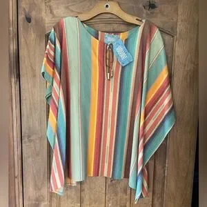 Silverado custom top with gorgeous serape material. Leather tie front generous flowing sizing. 100% cotton