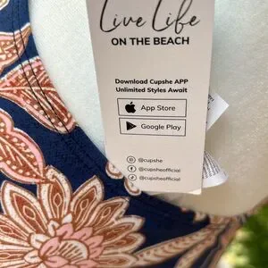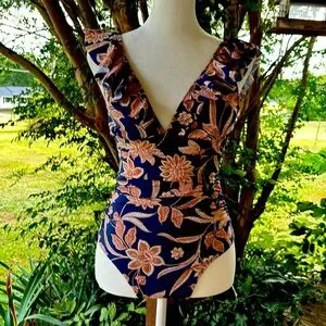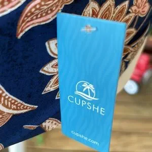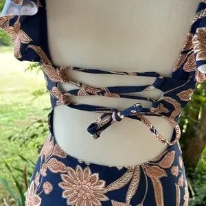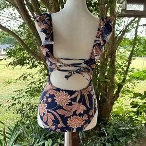 CupShe Blue Floral One piece Swimsuit XS ruffled v neckline lace up back NWT
