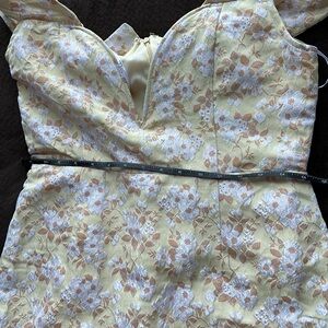 Lulu’s Favorite Song Yellow Floral Jacquard Off-the-Shoulder Mini Dress