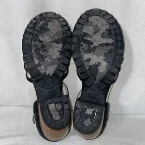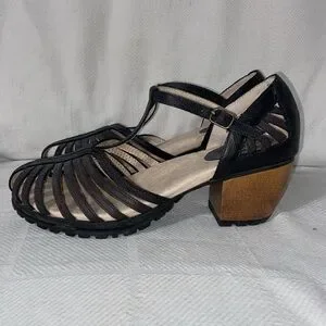 Here is a barely worn pair of cute heeled sandals…. Memory foam insoles … Wood look block heel with rubber tread soles …Heel is about 1.5” …. Adjustable strap around ankle…. Any ?? Just ask