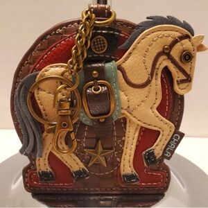 Chala Horse Key Fob -Detailed Stitching. Rhinestones. Studs. AntiqueBronze